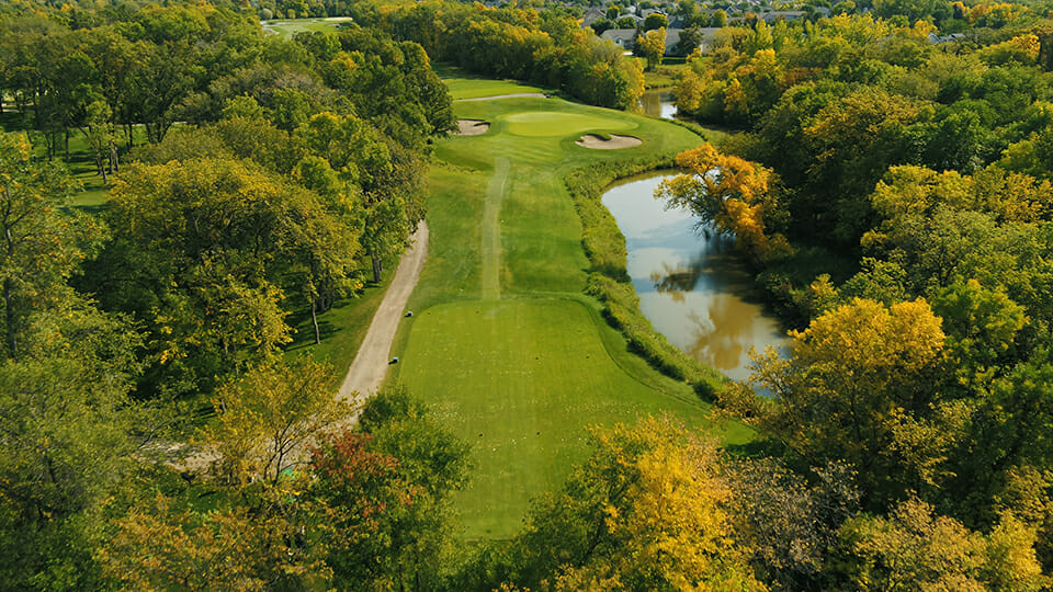 A short par 3 with a large undulated green. Evil lurks with water to the right and bunkers on the left and front right of the green. A great iron shot is rewarded with a makeable birdie putt…anything less will require you to dig deep to make a par.