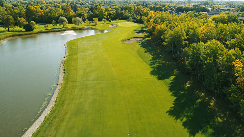 This par 5 has a large lake which lines the entire left side of the fairway. The tee shot taunts you to hit driver in order to go for the green in two. Be careful, the water sneaks up quickly on any shots left of the fairway. Once in the fairway, you will be faced with a decision to go at the green or lay up for position. The approach demands precise yardage and club selection to this large elevated green.